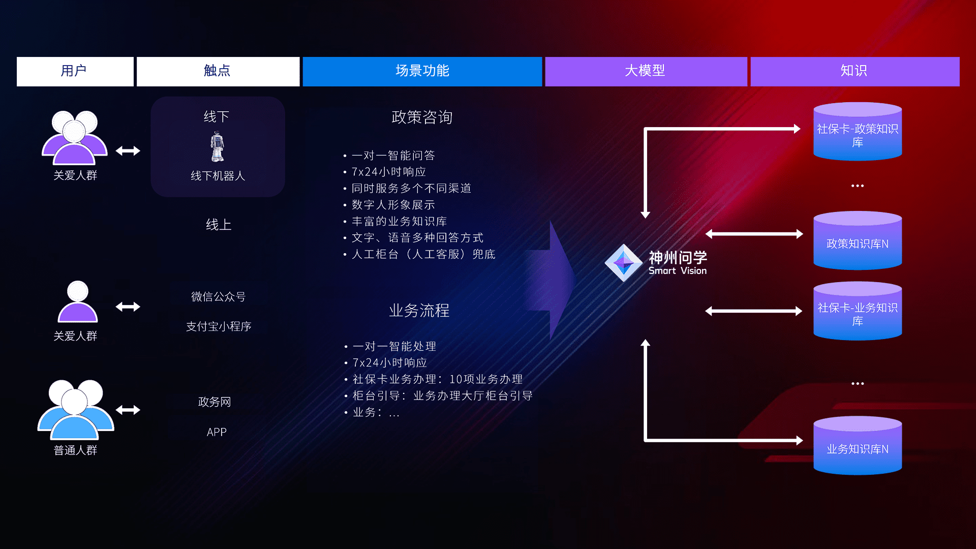 • 线上线下全覆盖:线上提供微信公众号、、、、支付宝小程序、、、、政务网、、、app多种渠道,,与线下机器人形成完整服务体系。。。。